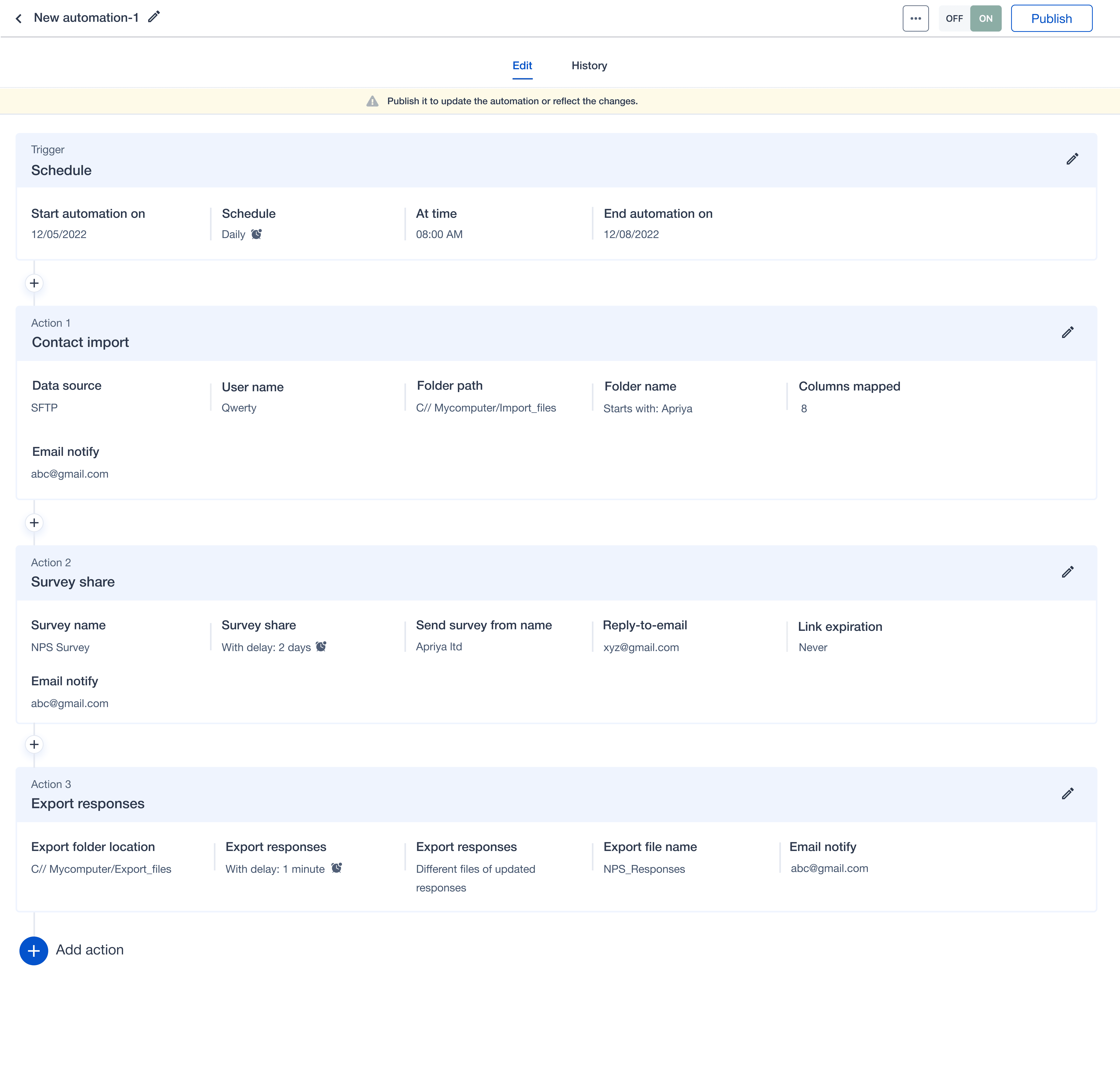 Built-in testing flow before publishing, so users could run a dry test of their automation to confirm everything works before going live.